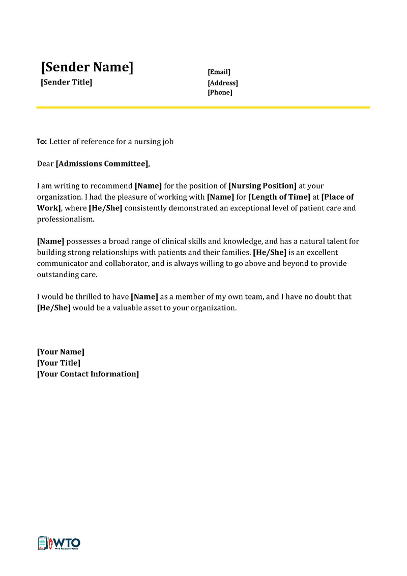 Free Registered Nurse Rn Letter Of Recommendation Template With Samples Pdf Word Eforms